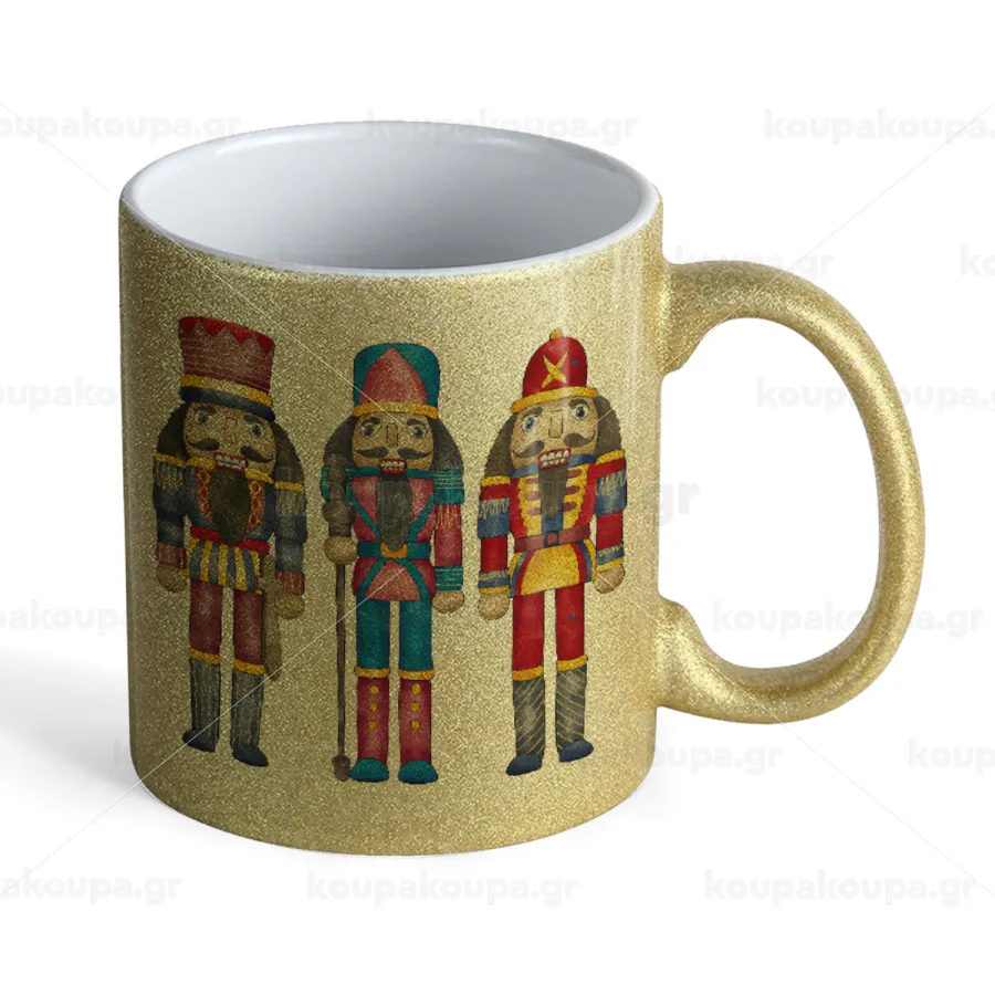 Christmas Nutcrackers, Κούπα Χρυσή Glitter που γυαλίζει, κεραμική, 330ml