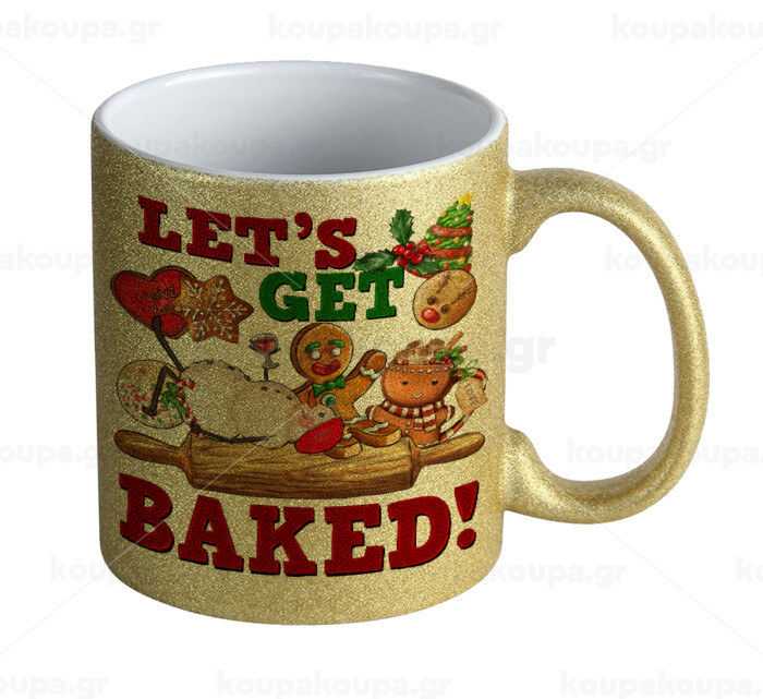 Let's get baked, Κούπα Χρυσή Glitter που γυαλίζει, κεραμική, 330ml