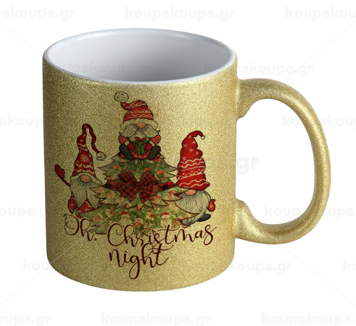 Oh Christmas Night, Κούπα Χρυσή Glitter που γυαλίζει, κεραμική, 330ml