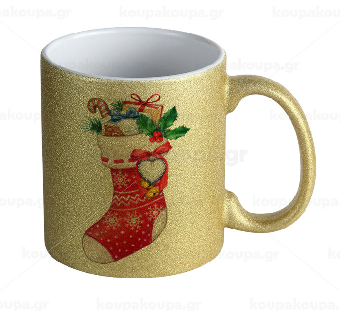 Xmas boot, Κούπα Χρυσή Glitter που γυαλίζει, κεραμική, 330ml