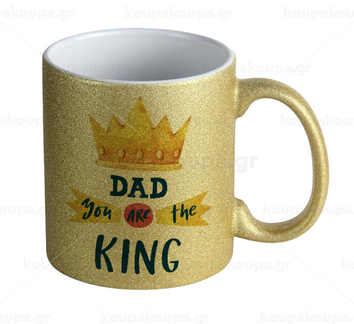 Dad you are the King, Κούπα Χρυσή Glitter που γυαλίζει, κεραμική, 330ml