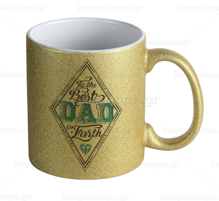 To the best DAD on earth, Κούπα Χρυσή Glitter που γυαλίζει, κεραμική, 330ml