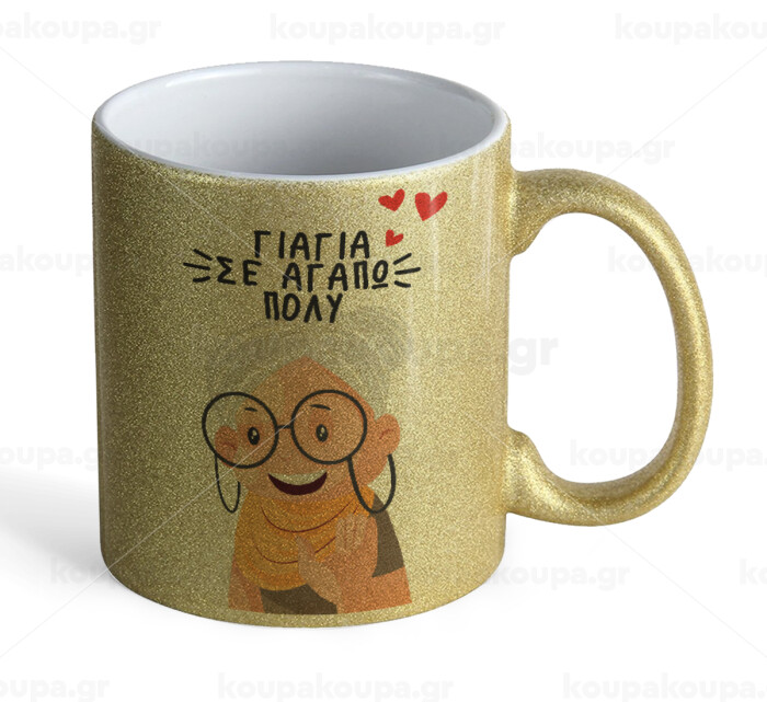 Γιαγιά σε αγαπώ πολύ!, Κούπα Χρυσή Glitter που γυαλίζει, κεραμική, 330ml