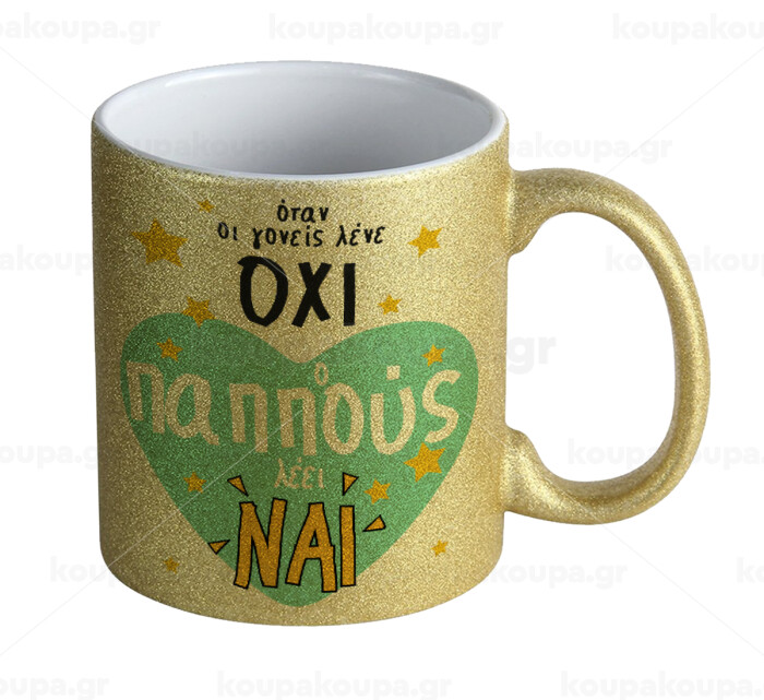 Όταν οι γονείς λένε ΟΧΙ, ο παππούς λέει ΝΑΙ, Κούπα Χρυσή Glitter που γυαλίζει, κεραμική, 330ml