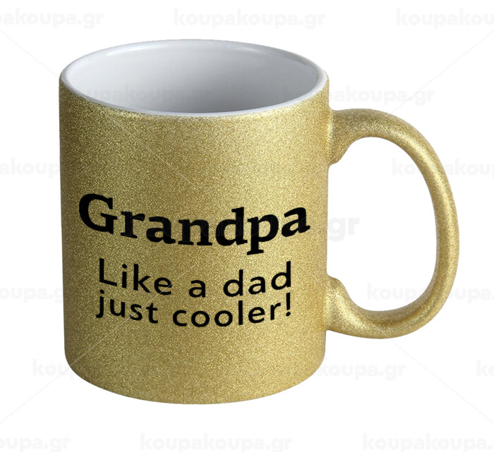 Grandpa, like a dad, just cooler, Κούπα Χρυσή Glitter που γυαλίζει, κεραμική, 330ml