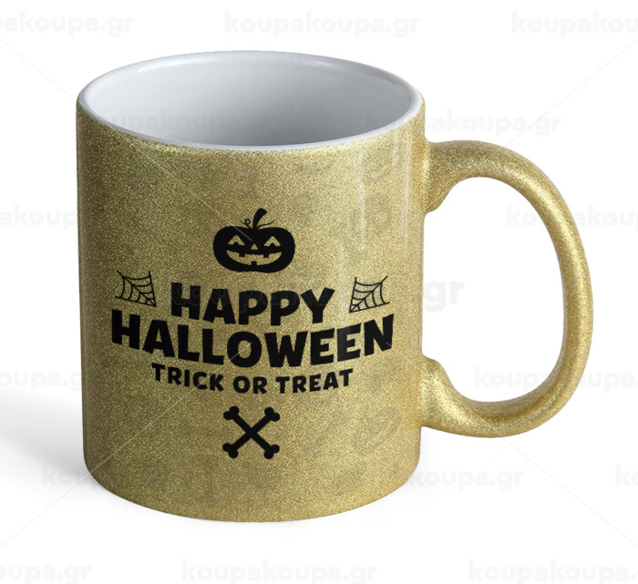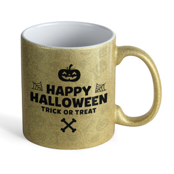 Happy Halloween pumpkin, Κούπα Χρυσή Glitter που γυαλίζει, κεραμική, 330ml