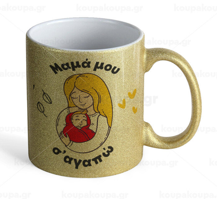 Μανούλα σ'αγαπώ αγκαλιά!, Κούπα Χρυσή Glitter που γυαλίζει, κεραμική, 330ml