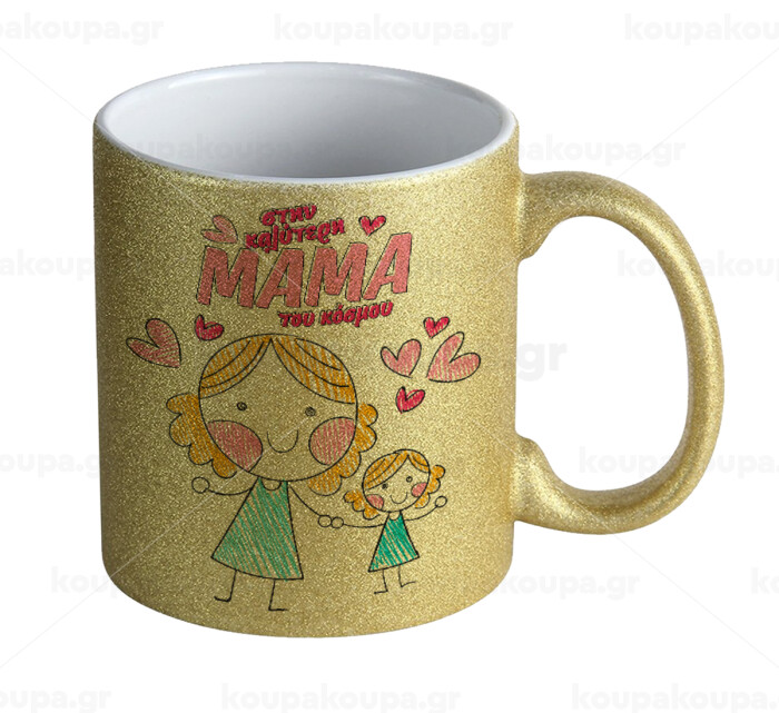 Στην καλύτερη μαμά του κόσμου, comic, Κούπα Χρυσή Glitter που γυαλίζει, κεραμική, 330ml