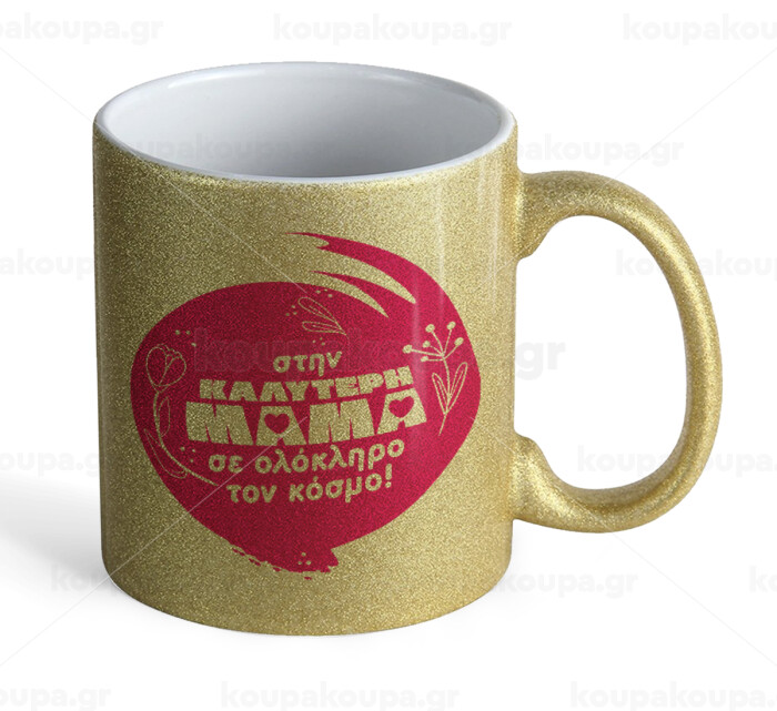 Στην καλύτερη μαμά του κόσμου!, Κούπα Χρυσή Glitter που γυαλίζει, κεραμική, 330ml