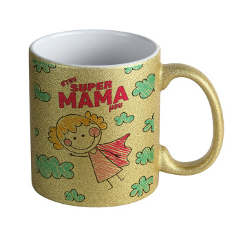 Στην SUPER μαμά μου, comic, Κούπα Χρυσή Glitter που γυαλίζει, κεραμική, 330ml