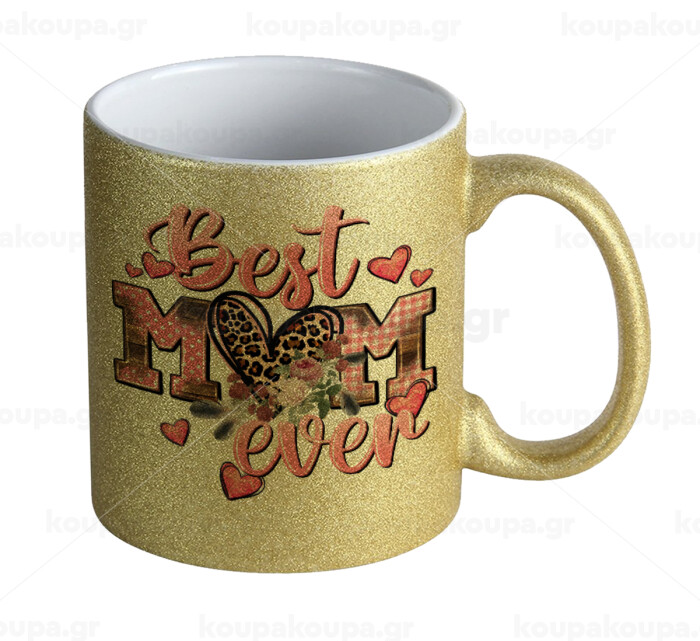 Best mom ever Mother's Day, Κούπα Χρυσή Glitter που γυαλίζει, κεραμική, 330ml