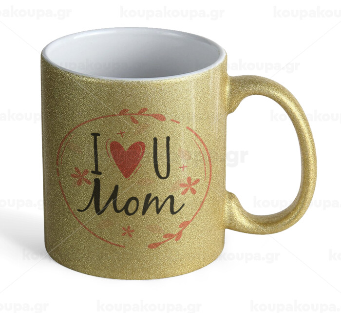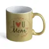 I Love you Mom pink, Κούπα Χρυσή Glitter που γυαλίζει, κεραμική, 330ml