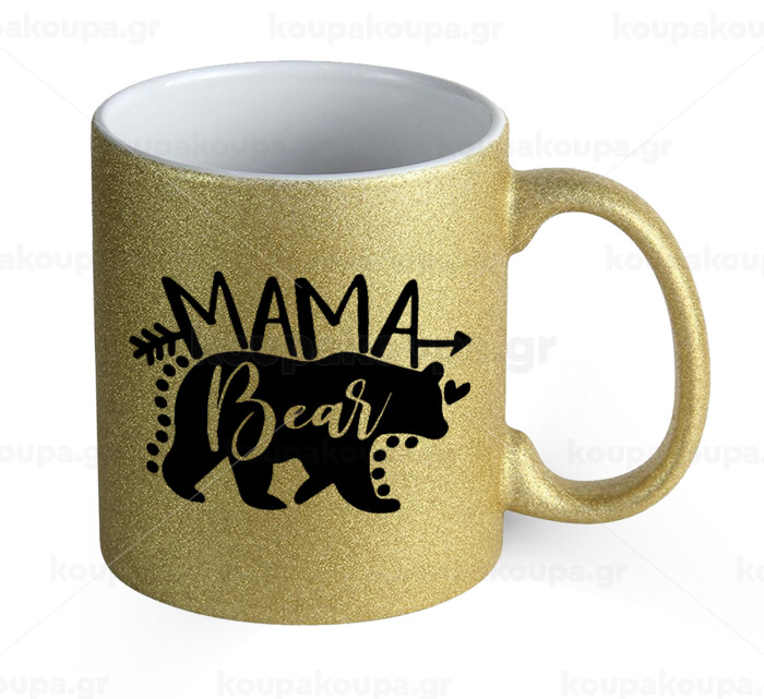 Mama Bear, Κούπα Χρυσή Glitter που γυαλίζει, κεραμική, 330ml