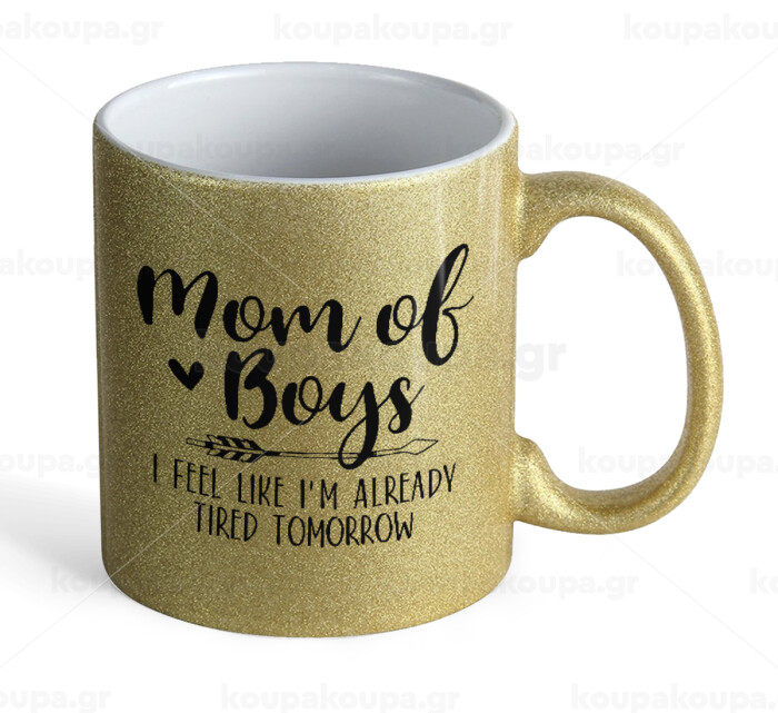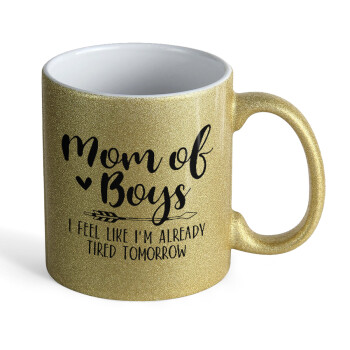 Mom of boys i feel like im already tired tomorrow, Κούπα Χρυσή Glitter που γυαλίζει, κεραμική, 330ml