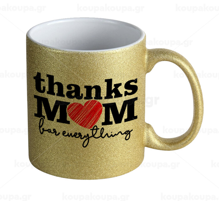 Thanks mom for everything, Κούπα Χρυσή Glitter που γυαλίζει, κεραμική, 330ml