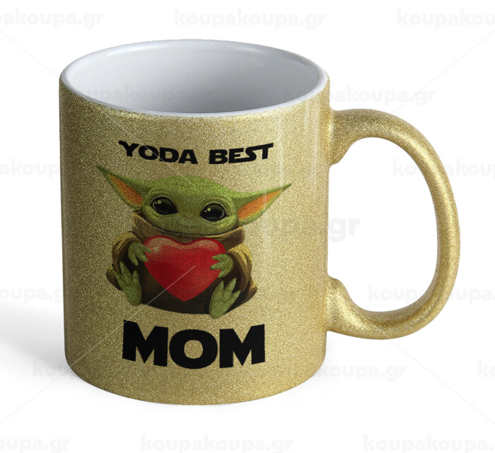 Yoda Best mom, Κούπα Χρυσή Glitter που γυαλίζει, κεραμική, 330ml