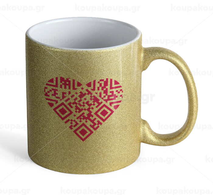 Heart hidden MSG, try me!!!, Κούπα Χρυσή Glitter που γυαλίζει, κεραμική, 330ml