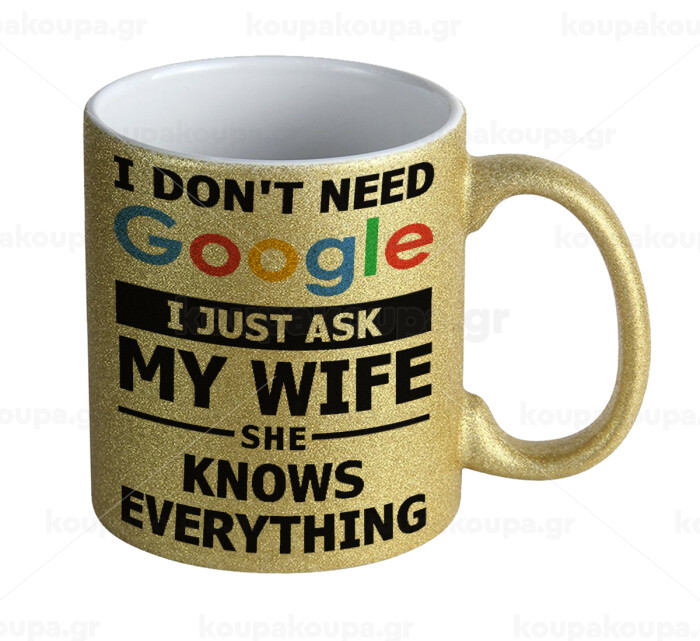 I don't need Google, just ask my WIFE, Κούπα Χρυσή Glitter που γυαλίζει, κεραμική, 330ml
