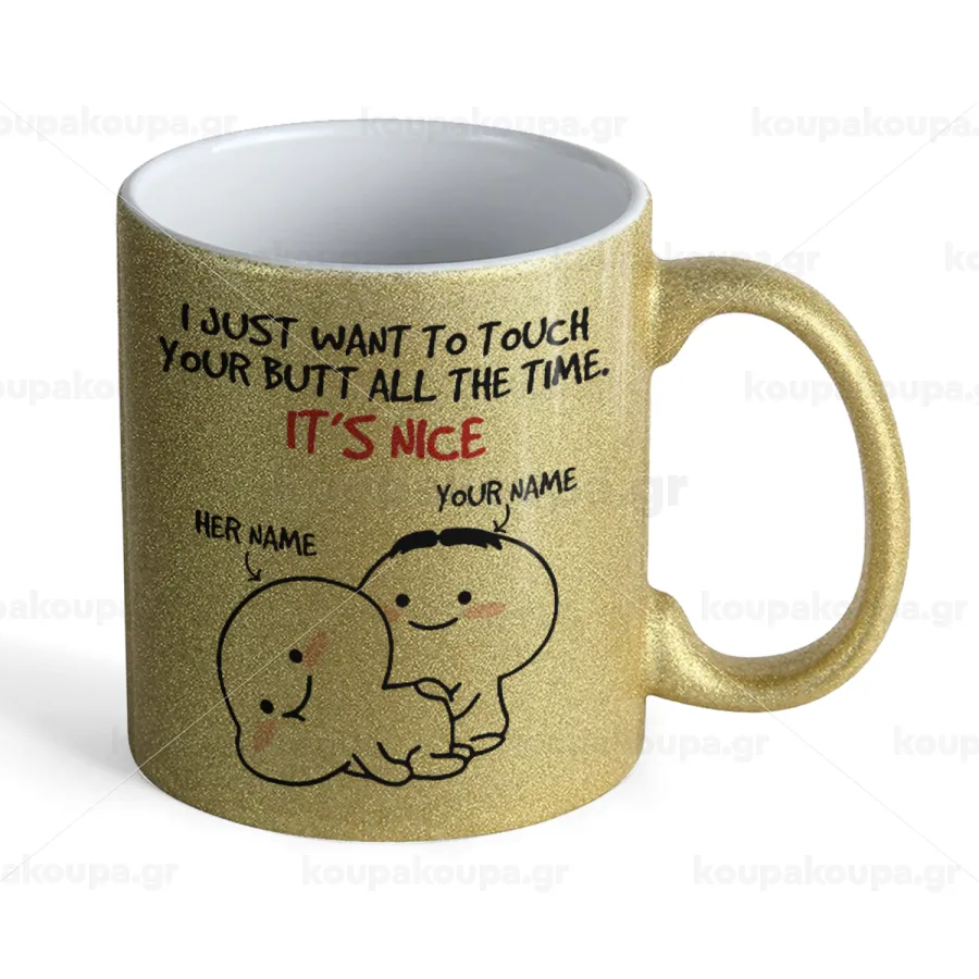 I Just Want To Touch Your Butt All The Time, Κούπα Χρυσή Glitter που γυαλίζει, κεραμική, 330ml