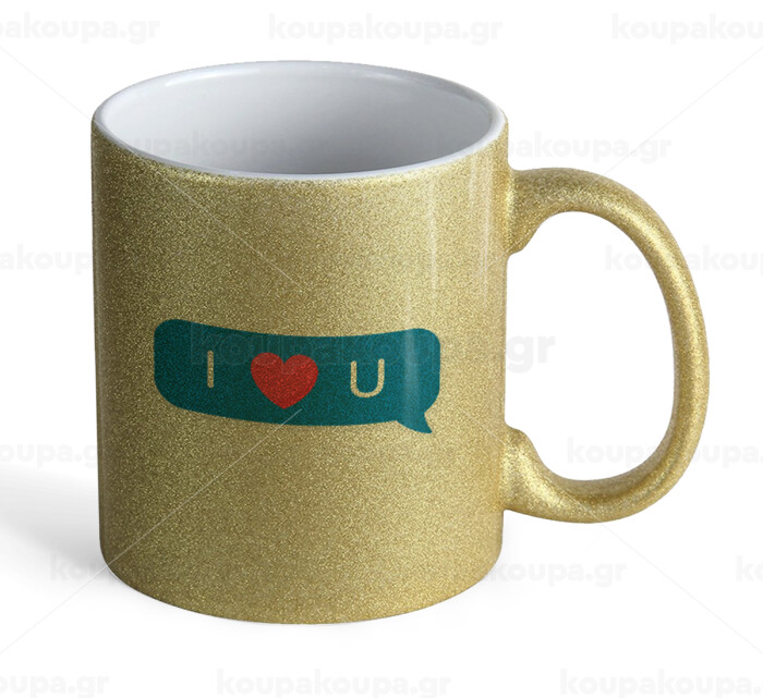 I Love You text message, Κούπα Χρυσή Glitter που γυαλίζει, κεραμική, 330ml