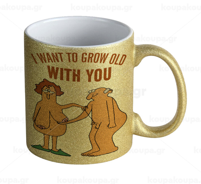 I want to grow old with you, Κούπα Χρυσή Glitter που γυαλίζει, κεραμική, 330ml