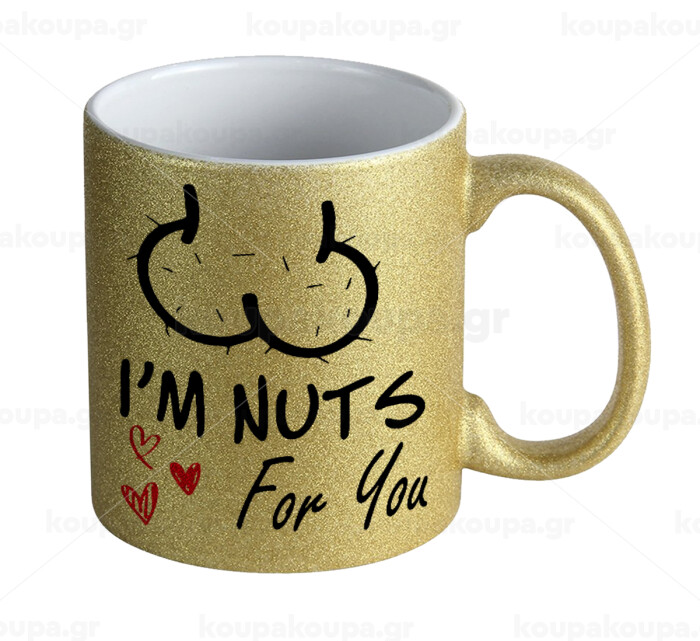 I'm Nuts for you, Κούπα Χρυσή Glitter που γυαλίζει, κεραμική, 330ml