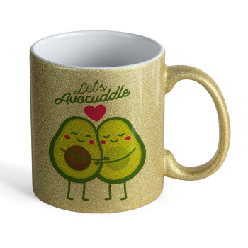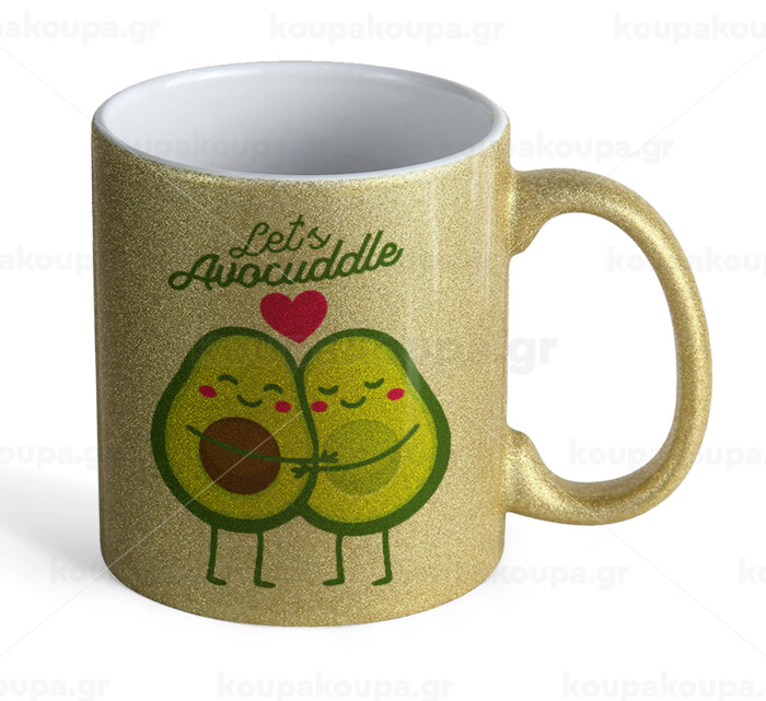 Let's avocuddle, Κούπα Χρυσή Glitter που γυαλίζει, κεραμική, 330ml
