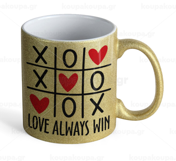 Love always win, Κούπα Χρυσή Glitter που γυαλίζει, κεραμική, 330ml