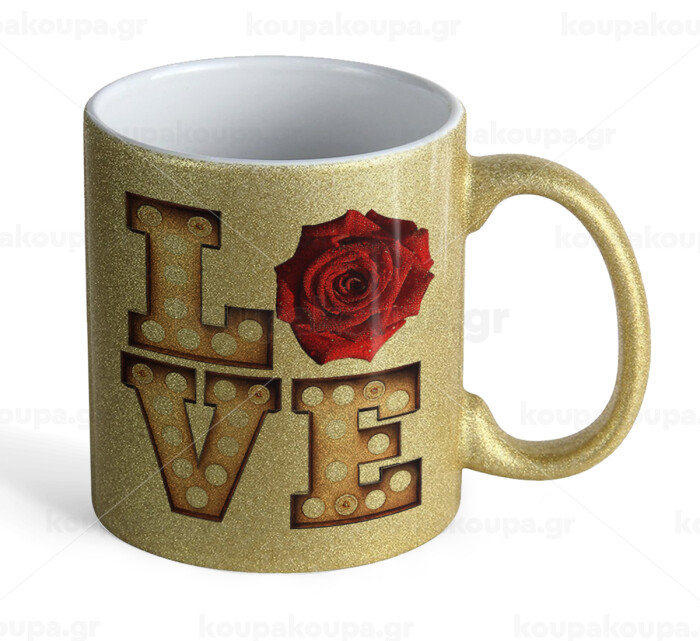 Love lights and roses, Κούπα Χρυσή Glitter που γυαλίζει, κεραμική, 330ml