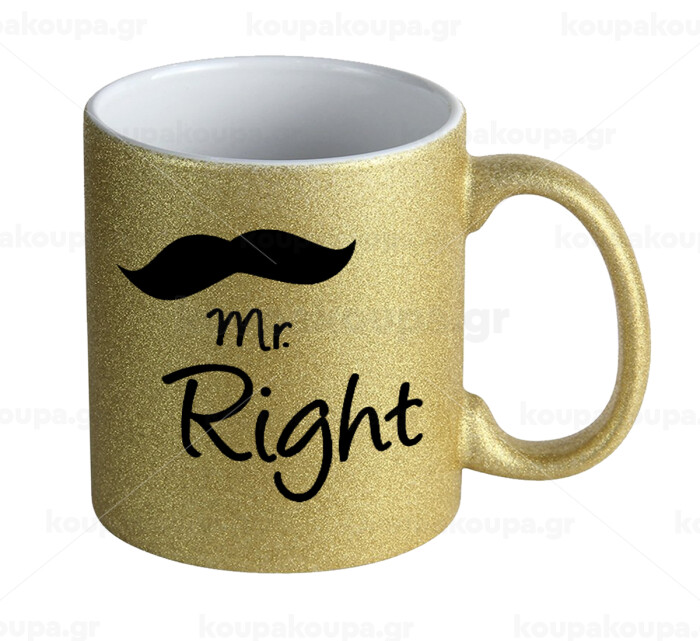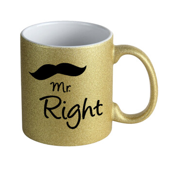 Mr right Mustache, Κούπα Χρυσή Glitter που γυαλίζει, κεραμική, 330ml