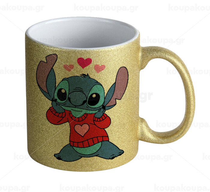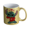 Stitch heart, Κούπα Χρυσή Glitter που γυαλίζει, κεραμική, 330ml