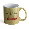 Will you be my Valentine???, Κούπα Χρυσή Glitter που γυαλίζει, κεραμική, 330ml