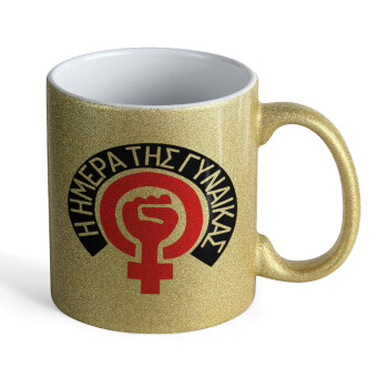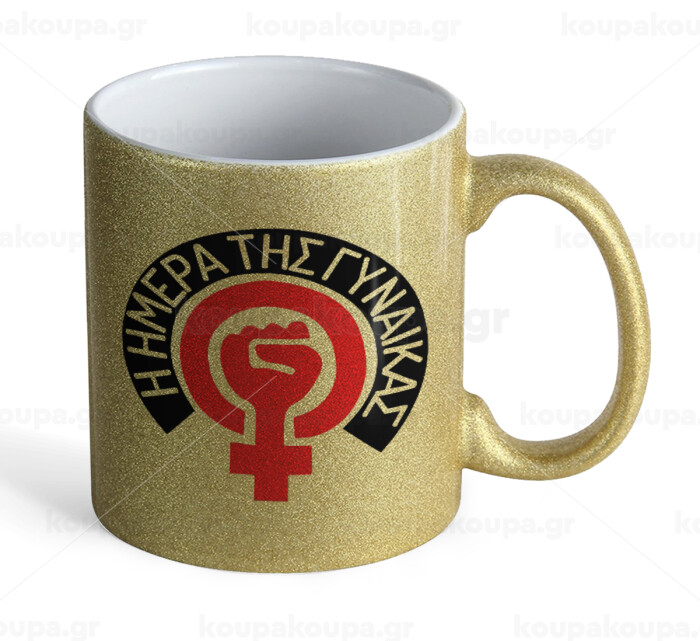 Ημέρα της γυναίκας, Κούπα Χρυσή Glitter που γυαλίζει, κεραμική, 330ml