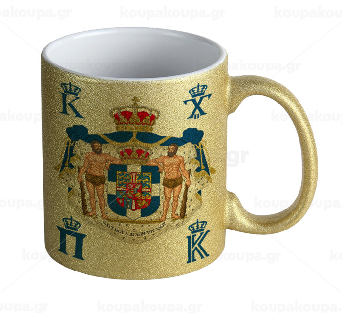 Hellas kingdom, Κούπα Χρυσή Glitter που γυαλίζει, κεραμική, 330ml