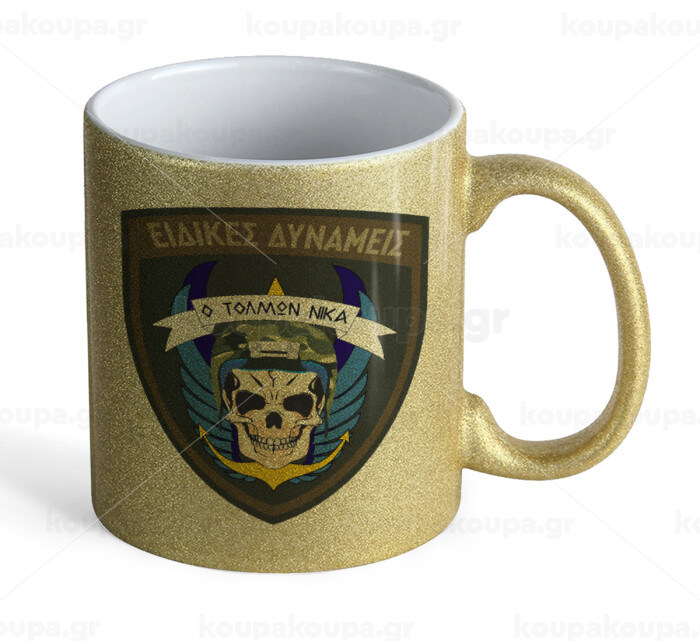 Hellas special force's, Κούπα Χρυσή Glitter που γυαλίζει, κεραμική, 330ml