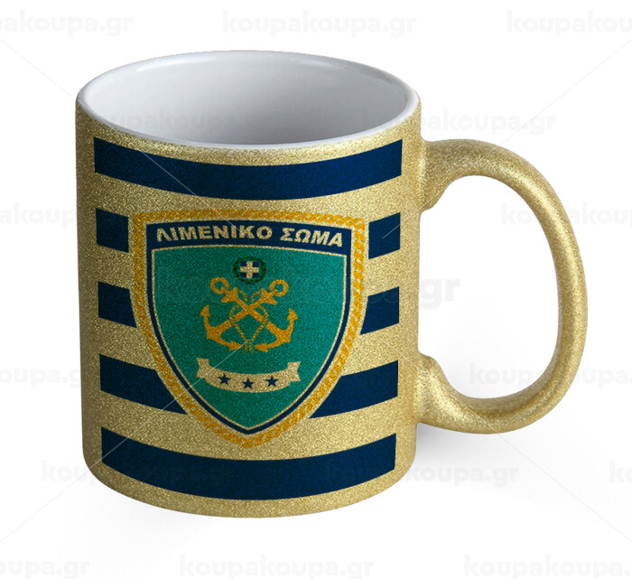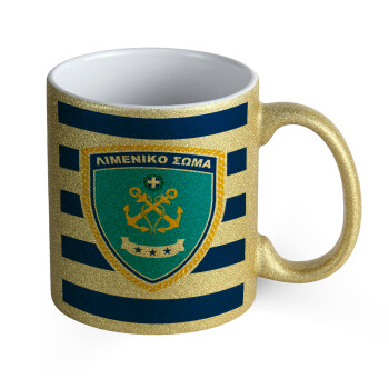 Hellenic coast guard, Κούπα Χρυσή Glitter που γυαλίζει, κεραμική, 330ml