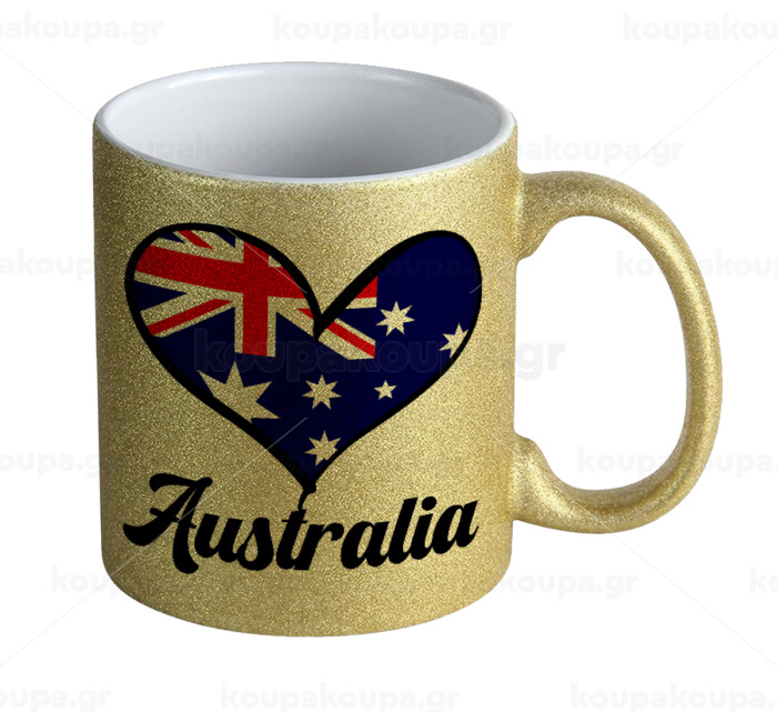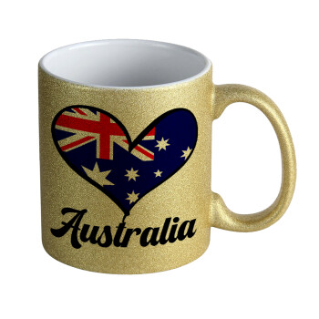 Australia flag, Κούπα Χρυσή Glitter που γυαλίζει, κεραμική, 330ml