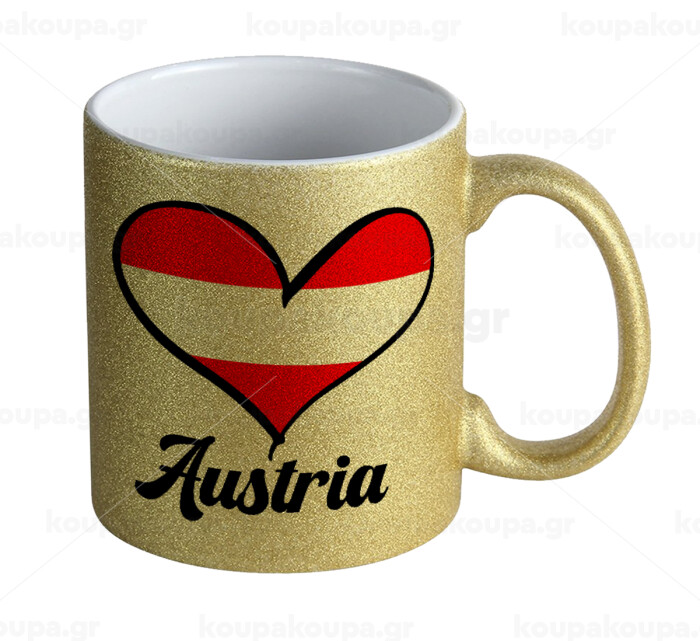 Austria flag, Κούπα Χρυσή Glitter που γυαλίζει, κεραμική, 330ml