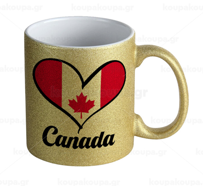 Canada flag, Κούπα Χρυσή Glitter που γυαλίζει, κεραμική, 330ml