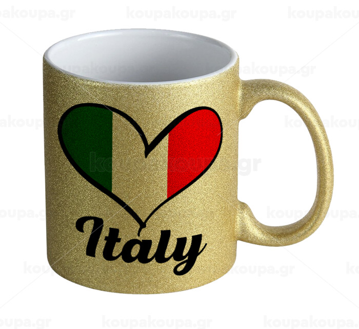Italy flag, Κούπα Χρυσή Glitter που γυαλίζει, κεραμική, 330ml