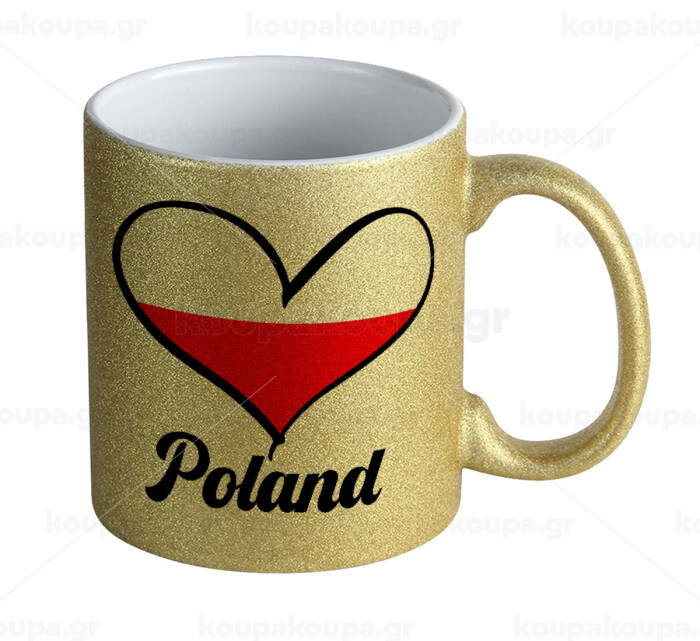 Poland flag, Κούπα Χρυσή Glitter που γυαλίζει, κεραμική, 330ml