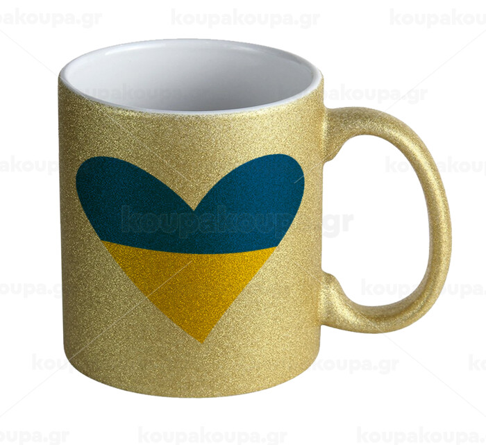 UKRAINE heart, Κούπα Χρυσή Glitter που γυαλίζει, κεραμική, 330ml