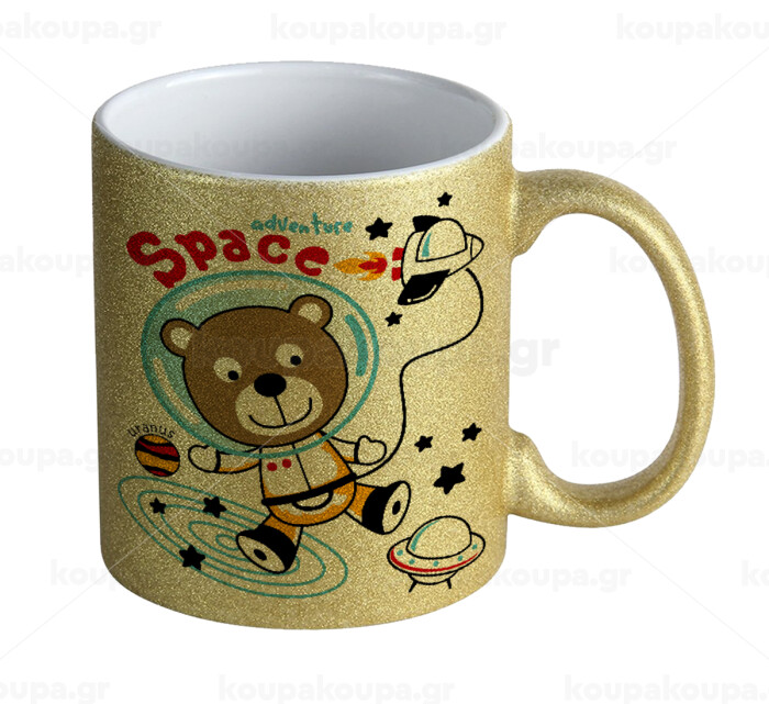 Kids Space, Κούπα Χρυσή Glitter που γυαλίζει, κεραμική, 330ml