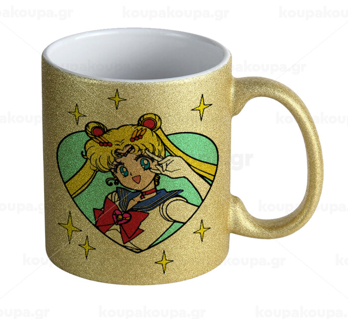 Sailor Moon star, Κούπα Χρυσή Glitter που γυαλίζει, κεραμική, 330ml