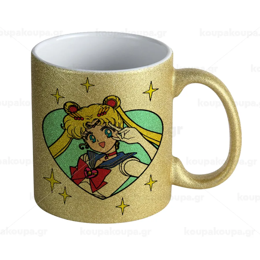 Sailor Moon star, Κούπα Χρυσή Glitter που γυαλίζει, κεραμική, 330ml