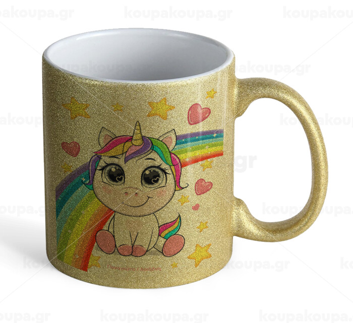 Unicorn baby με όνομα, Κούπα Χρυσή Glitter που γυαλίζει, κεραμική, 330ml