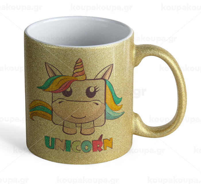 Unicorns cube, Κούπα Χρυσή Glitter που γυαλίζει, κεραμική, 330ml