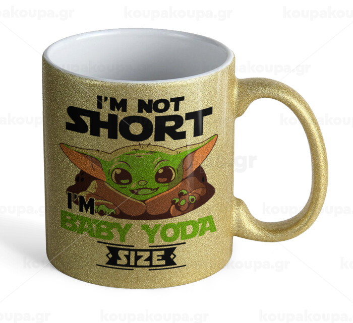 I'm not short, i'm Baby Yoda size, Κούπα Χρυσή Glitter που γυαλίζει, κεραμική, 330ml