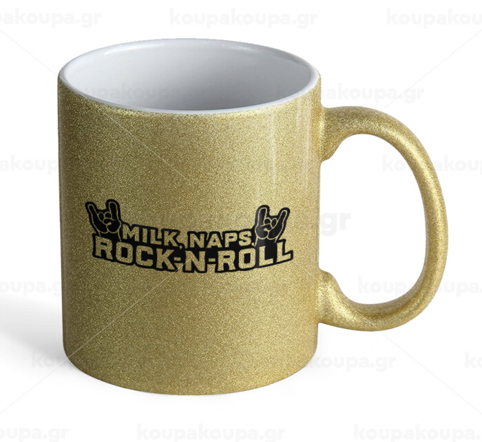 Milk, Naps, Rock N Roll, Κούπα Χρυσή Glitter που γυαλίζει, κεραμική, 330ml