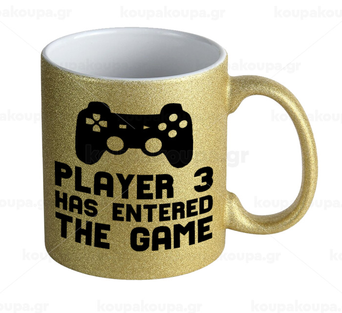 Player 3 has entered the Game, Κούπα Χρυσή Glitter που γυαλίζει, κεραμική, 330ml